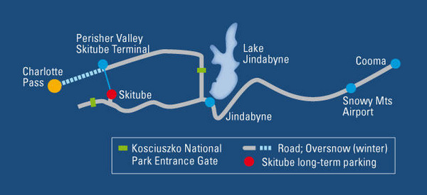 Perisher Valley 酒店不设过夜停车场,大家一般把车停在山下 Bullocks Flat 站,坐高山列车 SkiTube 上下山。
