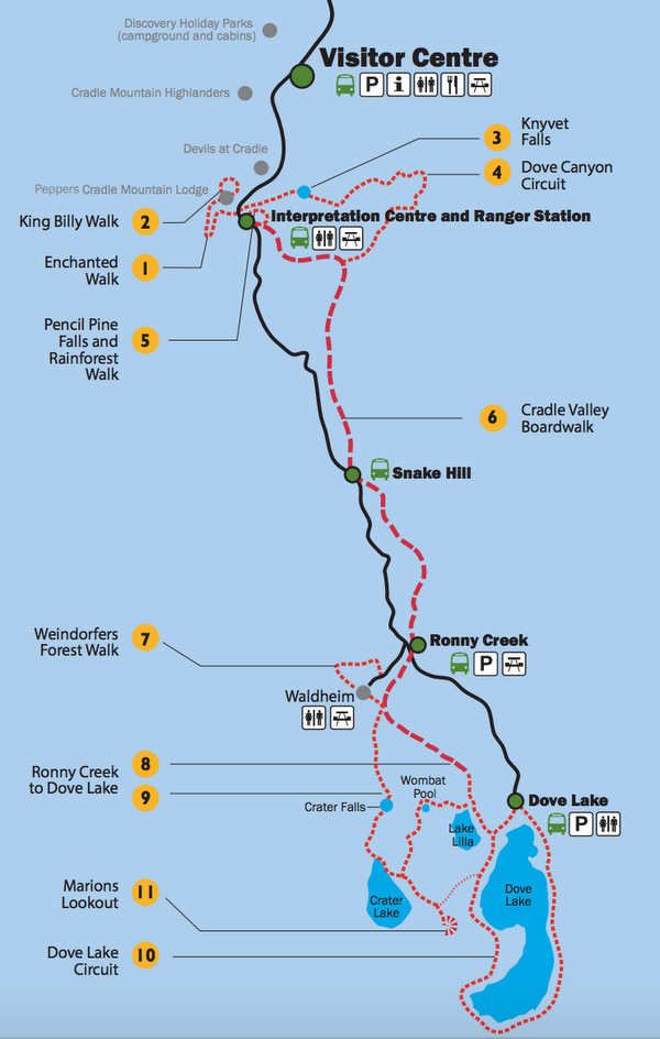 Visitor Center - Interpretation Centre and Ranger Station - Snake Hill - Ronny Creek - Dove Lake