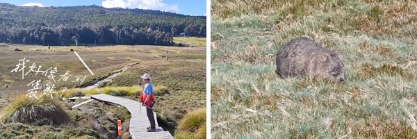 ‣ 袋熊出没地带(从火山湖下到 Ronny Creek 途中,接近接驳车站比较多)