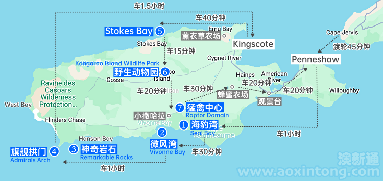 ‣ 袋鼠岛主要景点之间,离得都不近,不建议1天安排太多行程