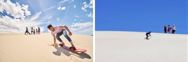 沙丘,沙白细腻,坡高且陡,可以玩滑沙和骑沙地越野摩托。
