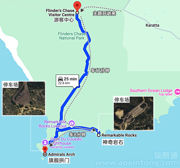 ‣ 停车场 Remarkable Rocks Carpark 走到神奇岩石10-15分钟