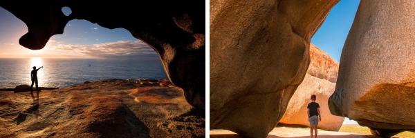 Day1: 阿德莱德出发,渡轮上岛:1. 海豹湾 > 小撒哈拉(选去)> 2.微风湾 > 3.神奇岩石 > 4.旗舰拱门(看日落),住 Kingscote